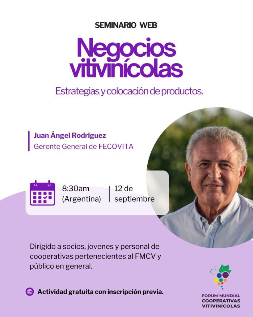 El FMCV invita a participar del primer encuentro de su ciclo de capacitaciones: “Negocios vitivinícolas: Estrategias y colocación de productos”, a cargo de Juan Ángel Rodríguez, Gerente General de FECOVITA. El encuentro será el próximo viernes 12 de setiembre por Zoom